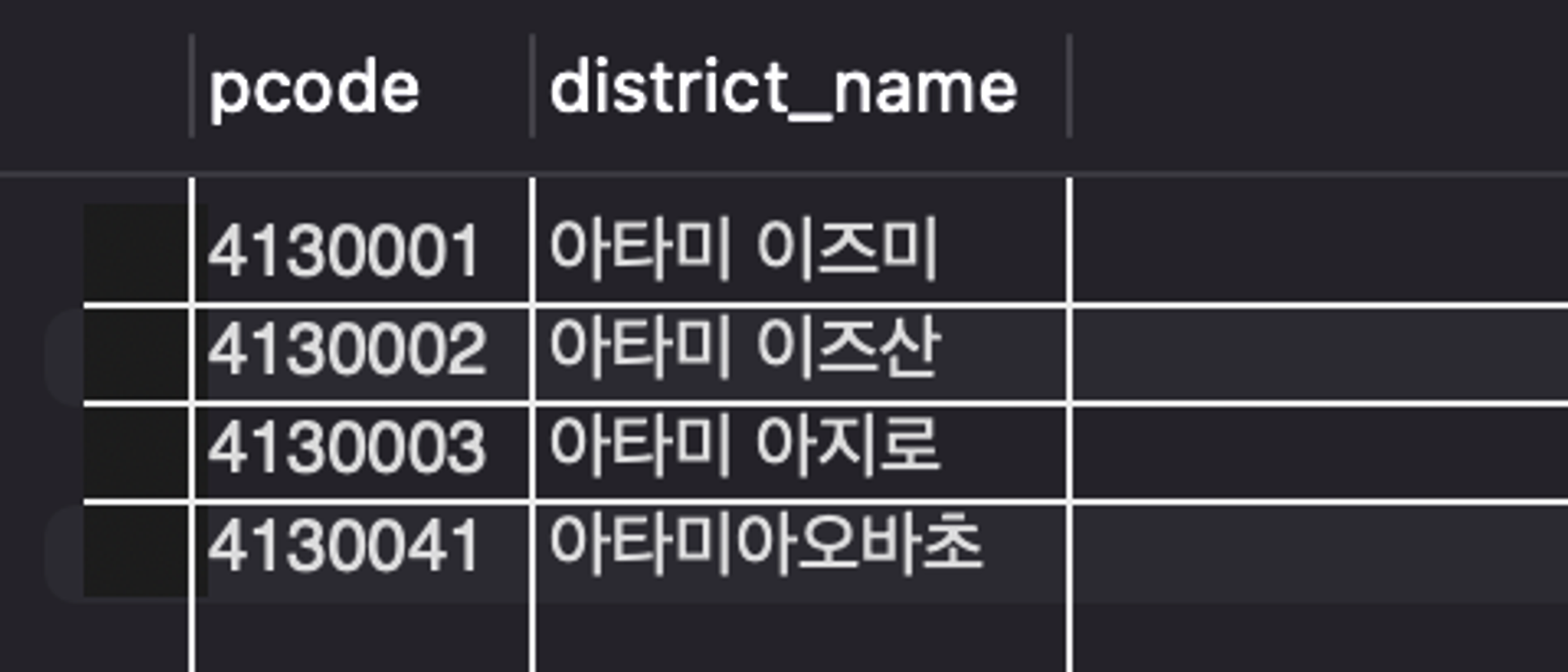 - 최근 주소부터 탐색 : 4130103 → 4130002 → 4130001