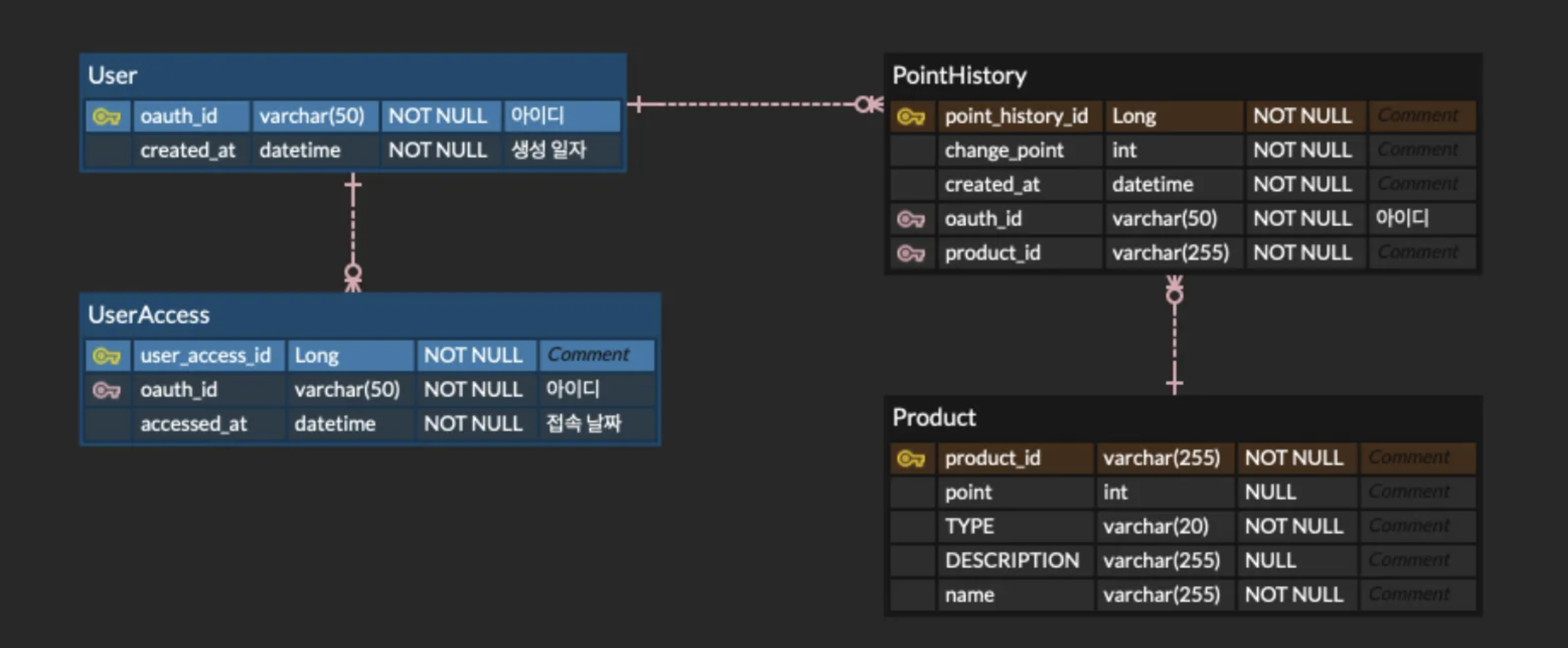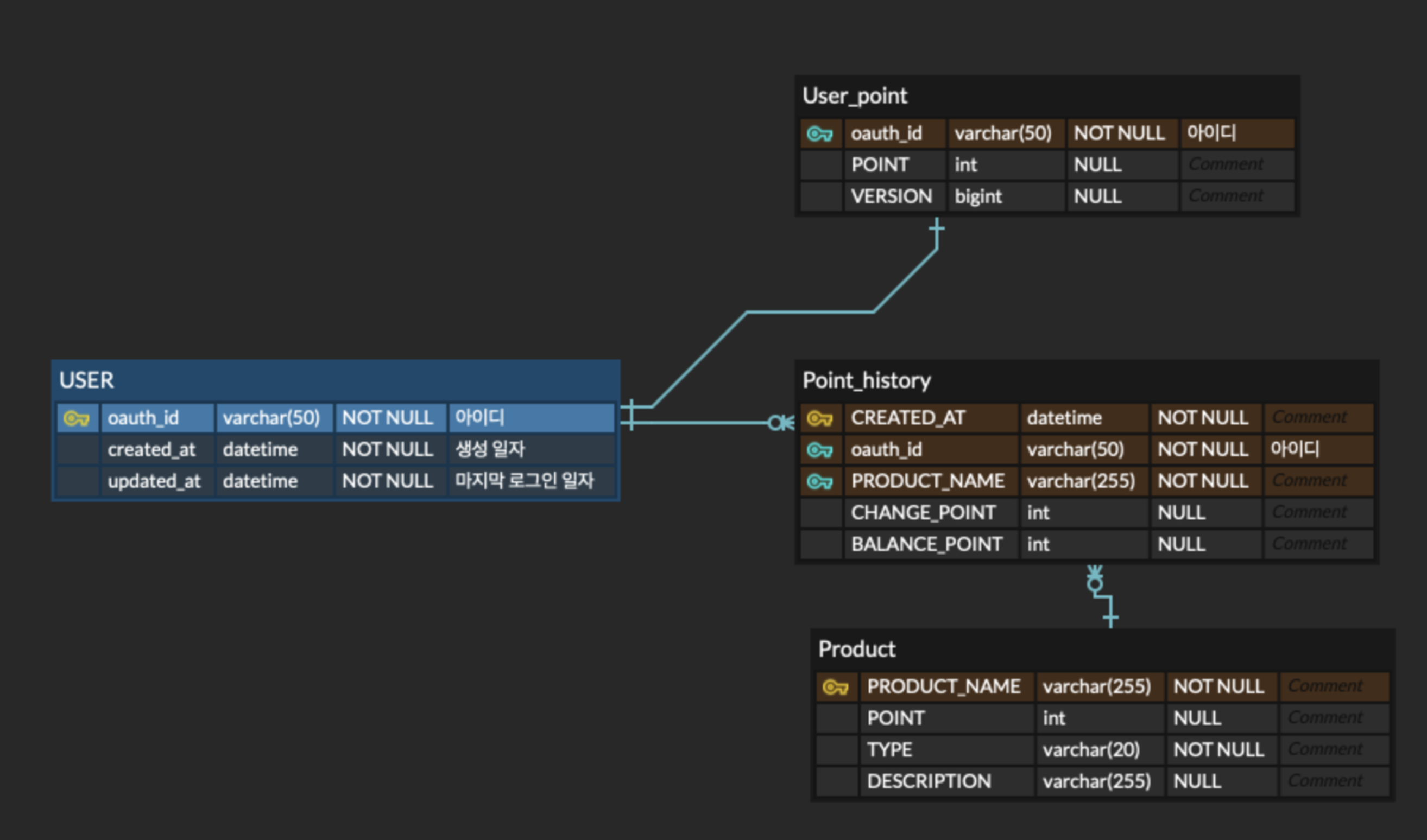 여기서는 User 테이블과 Point_history 테이블만 참고하면 된다 !