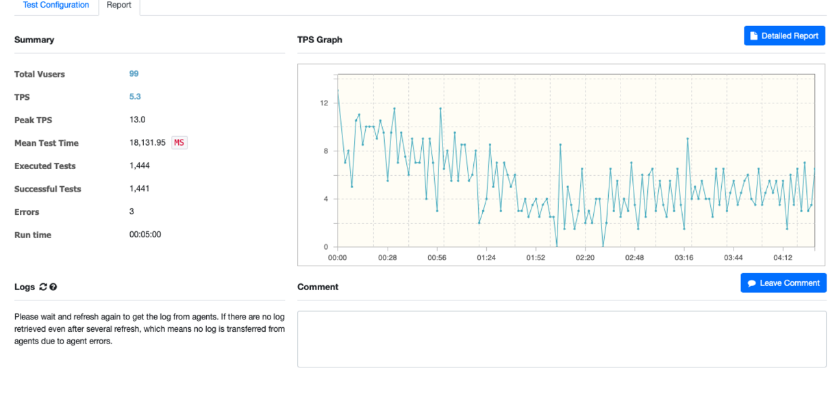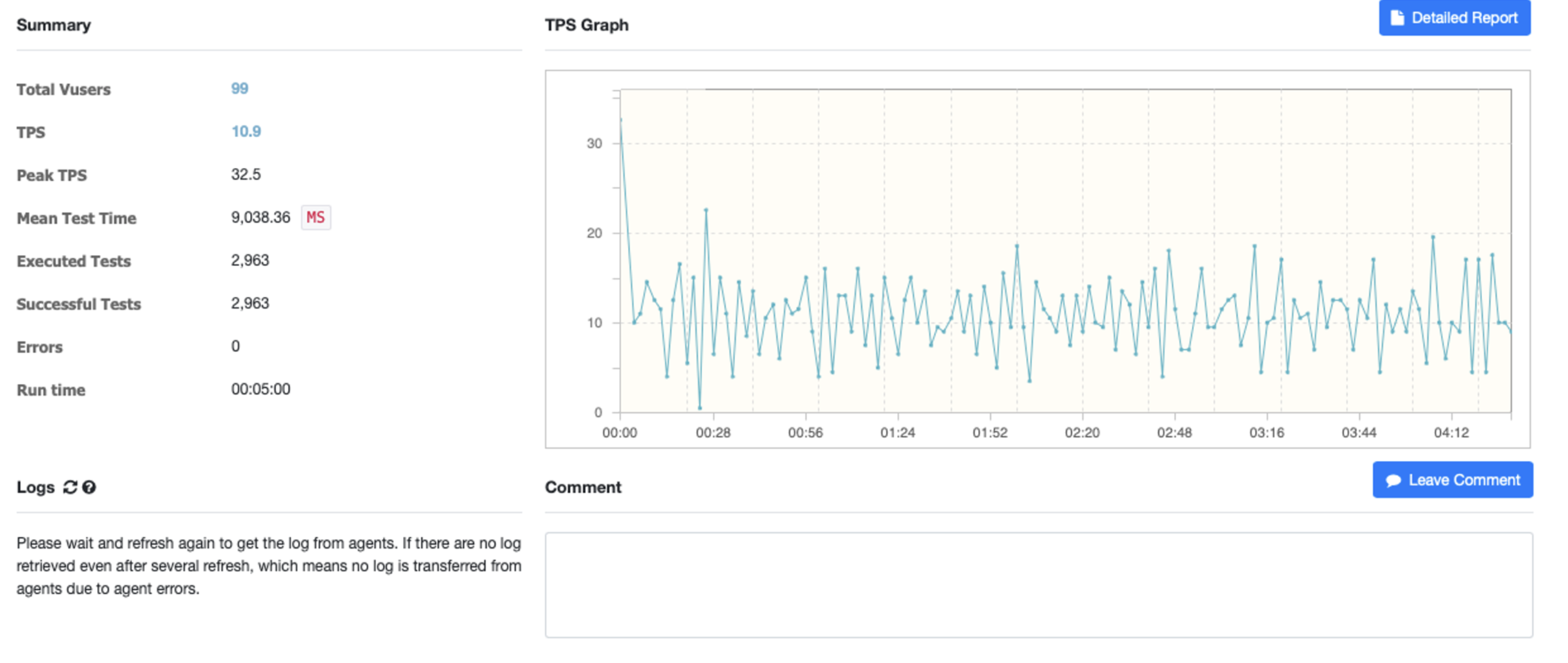 테스트 결과 , 1444번의 요청 중 3번의 에러가 있었고, MTT 는 18초 , TPS는 5.3을 기록했다.