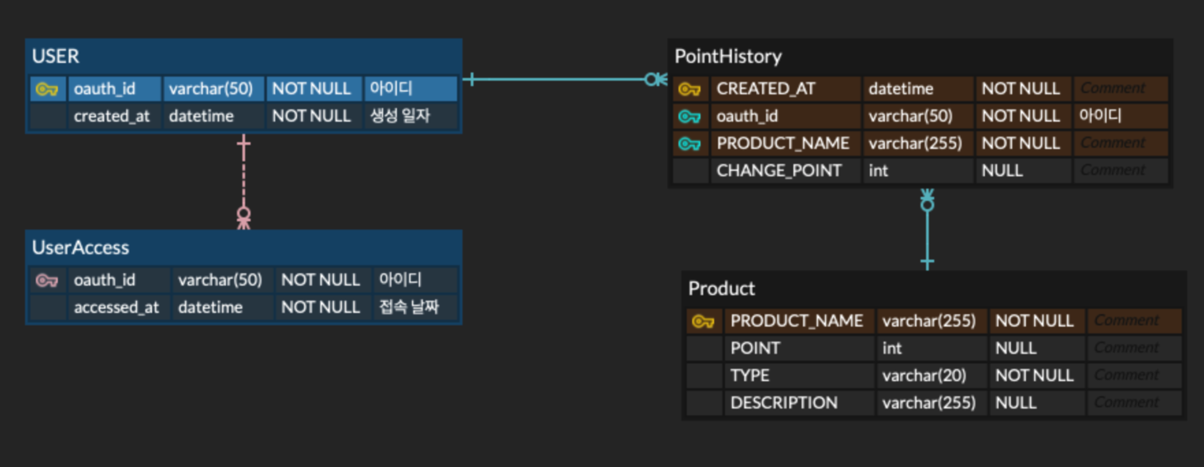 아래 ERD에서 User 테이블과 PointHistory 테이블을 확인해 보자