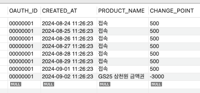또한 Point_history 테이블은 데이터가 24만건이나 되는데 , rows가 8인 이유는,, 나의 더미데이터 때문이다..
