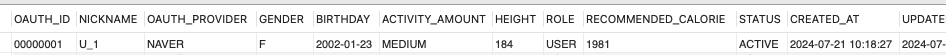 User 테이블은 PK 값인 oauth_id 컬럼으로 인덱스를 탄다.
