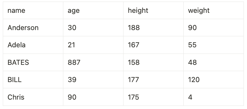 INSERT INTO Persons (name, age, height, weight) VALUES