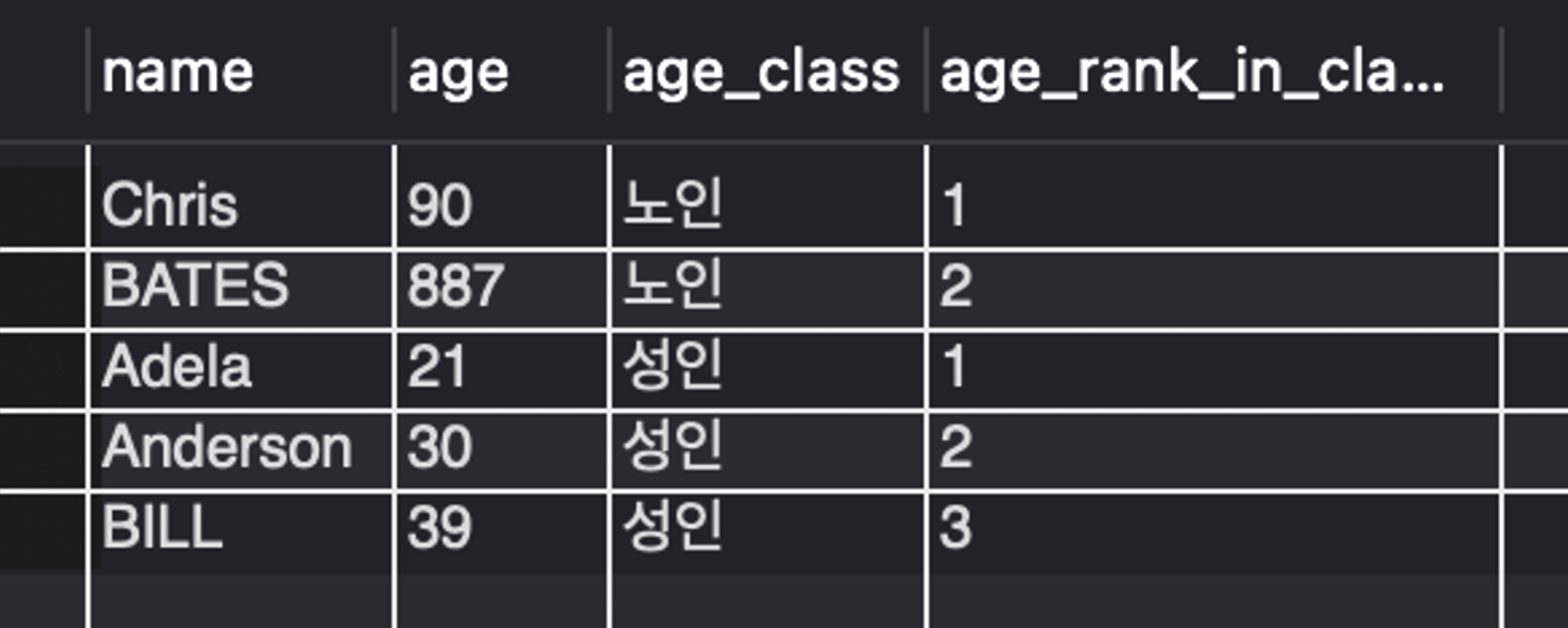 RANK() OVER(PARTITION BY CASE WHEN age < 20 THEN '어린이'